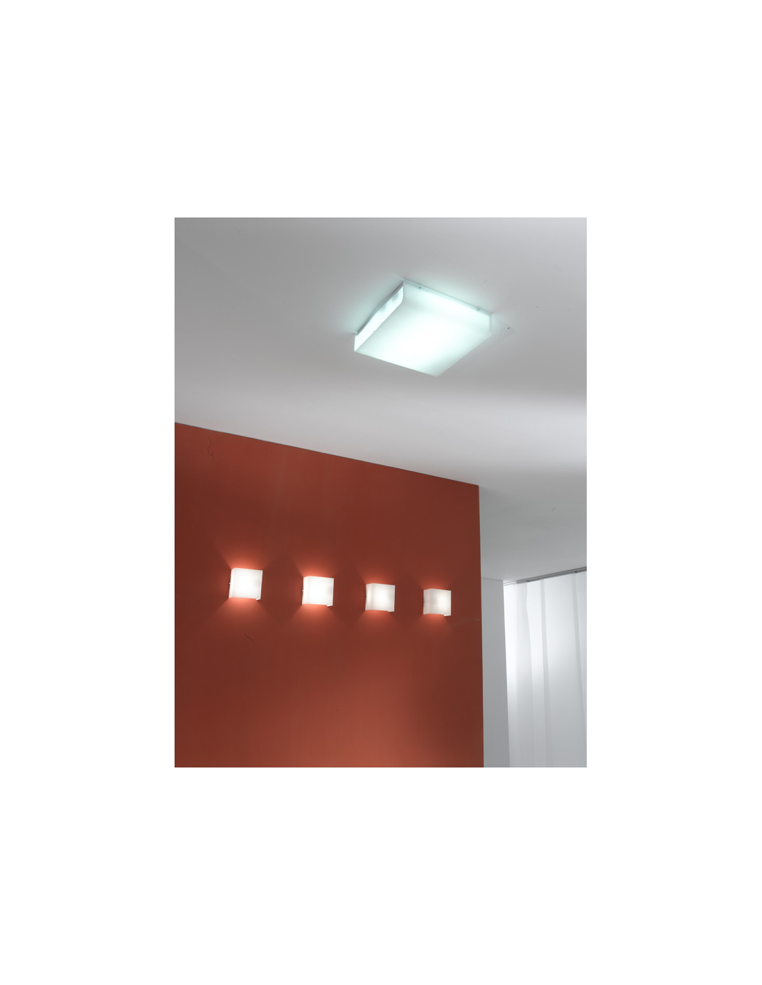 Lamp giving diffused light. Painted metal frame, painted glass diffuser. Also available with multi-chip SMD LED natural white light.