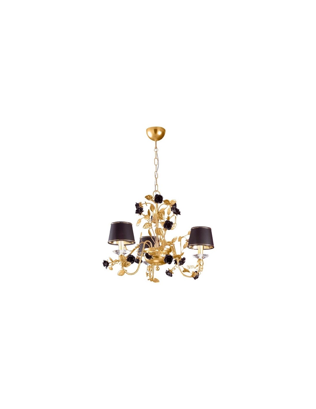 Pendant Lamp with classic taste. Matt Gold or Nickel metal frame, it is entirely covered with leaves, decorated with matt black painted flowers and sweetened by blacks shades propped refined bobèches crystal to PbO30% transparent.