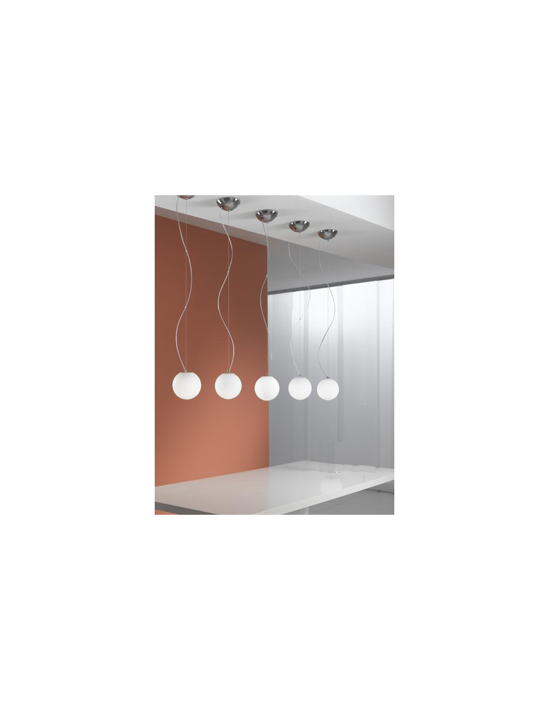 The small suspension for light compositions. Shiny nickel metal structure, diffuser in satined opal blown glass Ø. of 130mm.