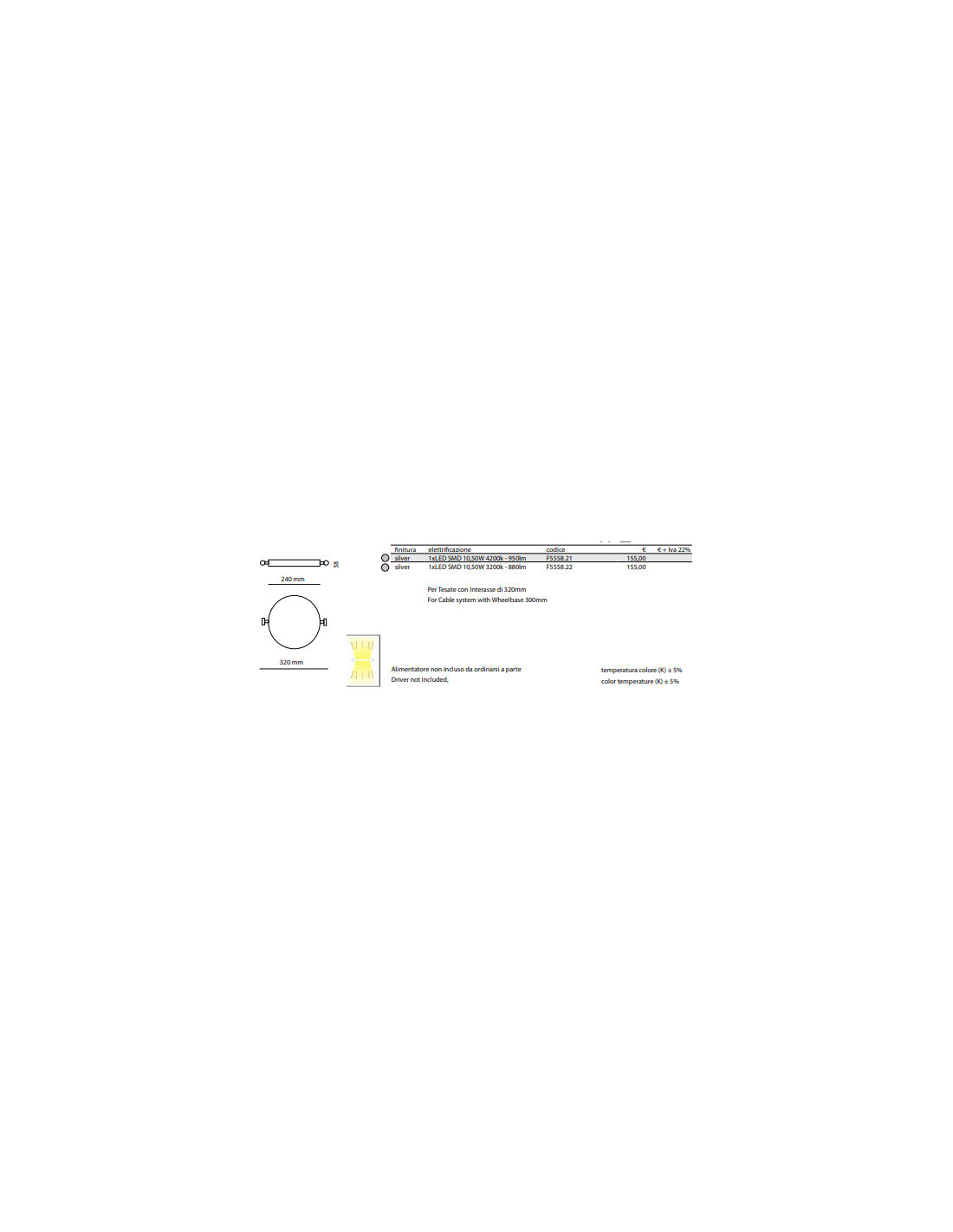 Lighting: a power LED 3.25Watt. Electronic power supply outlet.