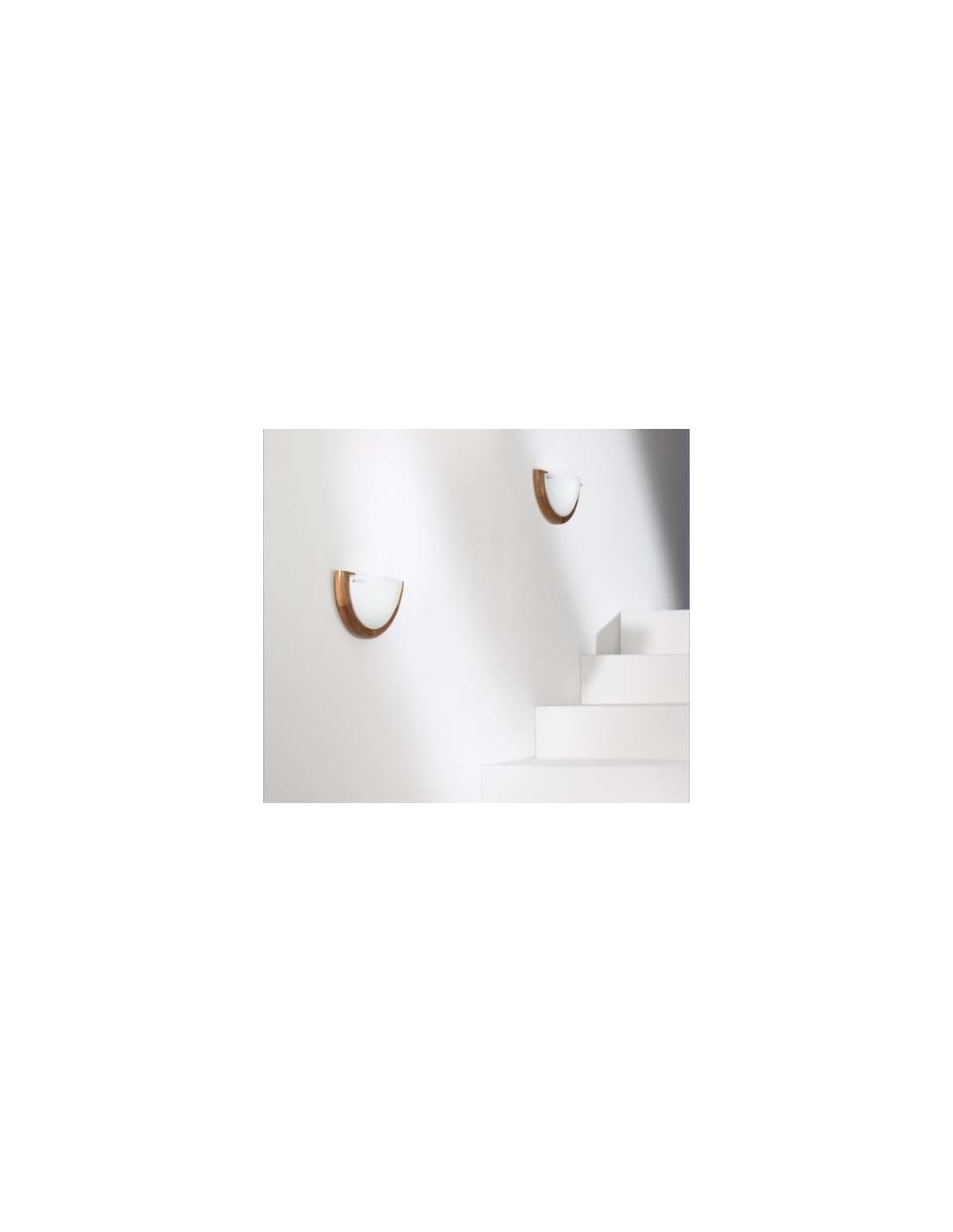 Led Wall Lamp with metal frame and wood frame oak finish. Frosted glass diffuser.
