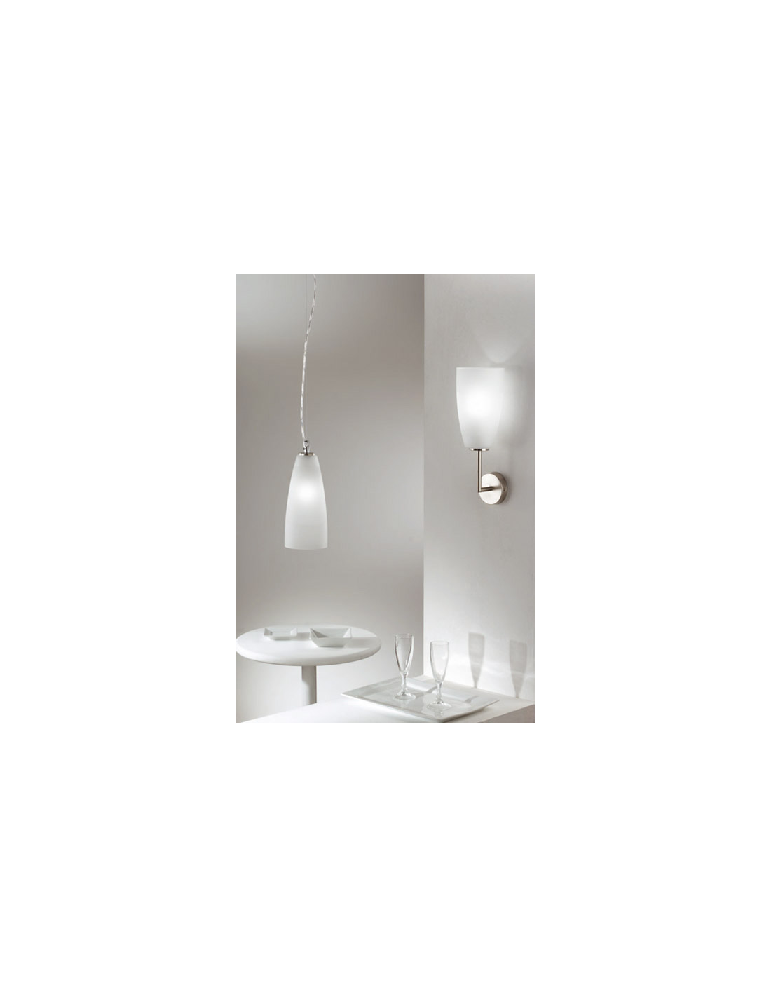 Struttura in Nikel Spazzolato, il diffusore è in vetro soffiato trasparente poi finemente satinato.