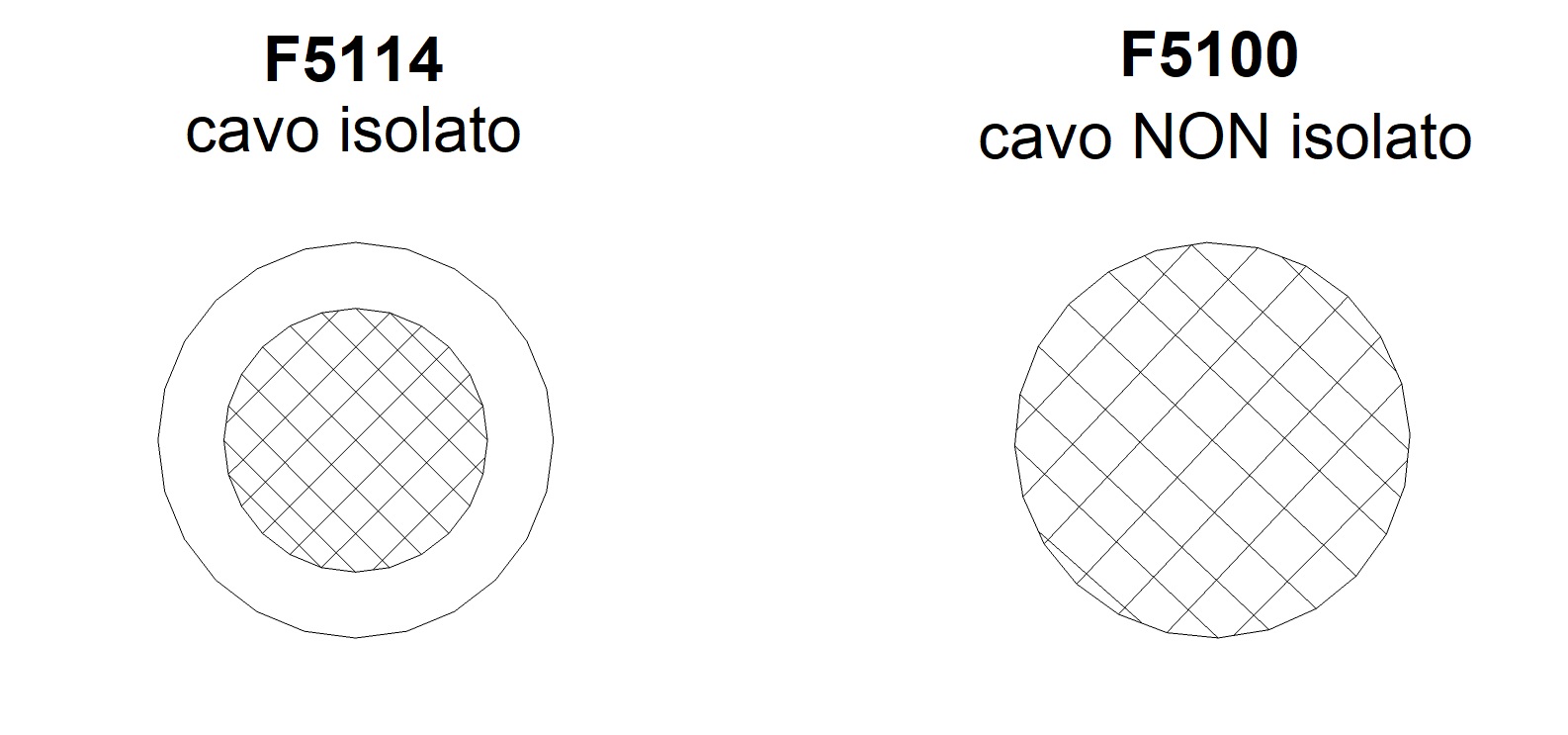 E' disponibile in versione standard NON ISOLATO con la sua bella treccia a vista quasi a sembrare un tessuto, in finitura NIKEL o RAME (F5100) oppure in versione ISOLATO con rivestimento in PVC trasparente.