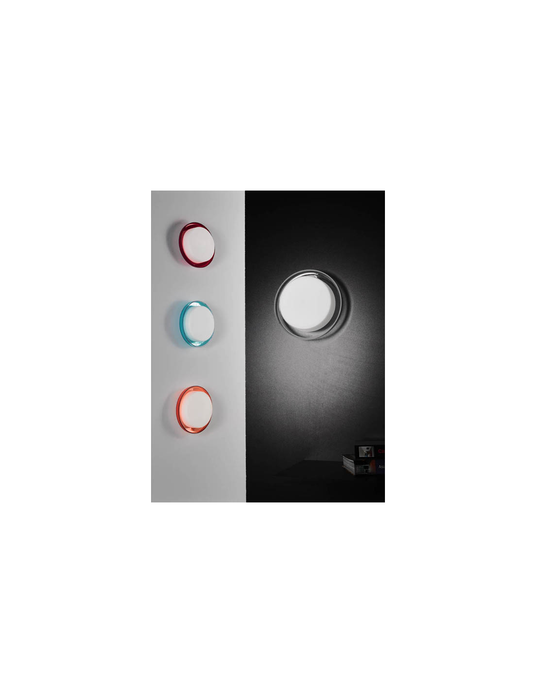 Lampada da Soffitto / Parete a luce diffusa. Il Diffusore è in vetro soffiato opale satinato. Ha una elegante cornice in vetro soffiato trasparente, disponibile nei colori Cristallo, Ambra, Blu.