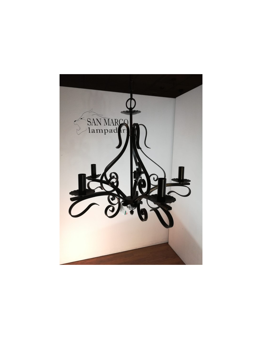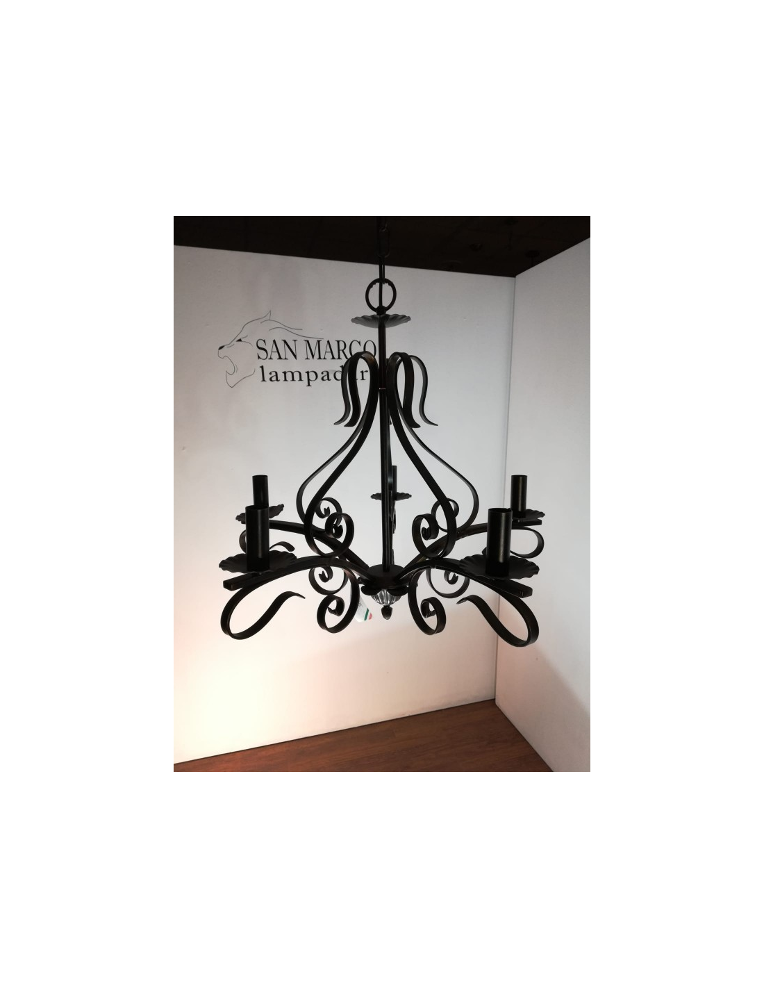 Splendido Lampadario in Ferro Battuto, lavorato in stile tipicamente medievale. In una casa rustica o con un arredamento antico, in un ambiente gastronomico o in un hotel di stile corrispondente, o magari anche in un'abitazione moderna per un tocco originale: il nostro lampadario "Rocca" trasmette tutto il fascino di un oggetto medievale.