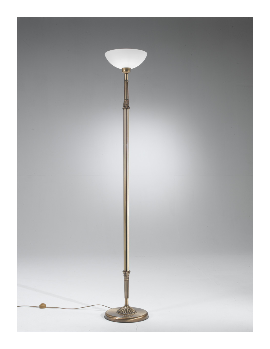 Elegante lampada da terra in fusione d'Ottone, finitura brunito spazzolato.