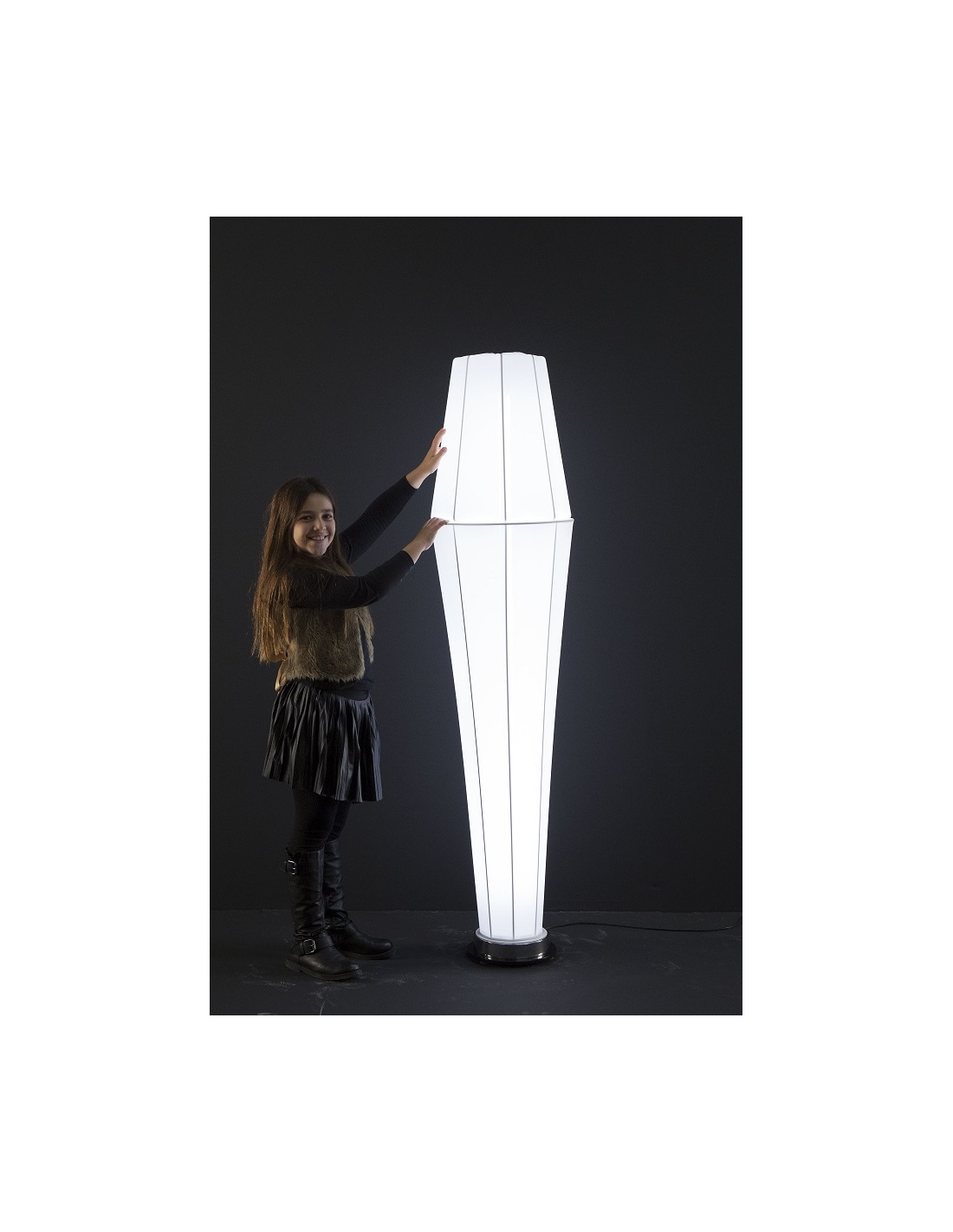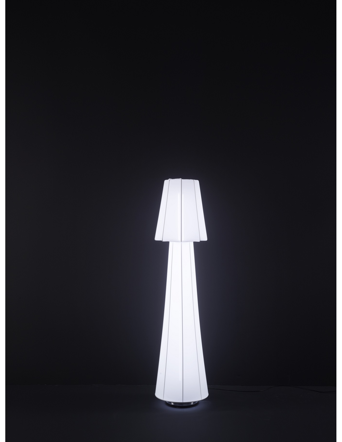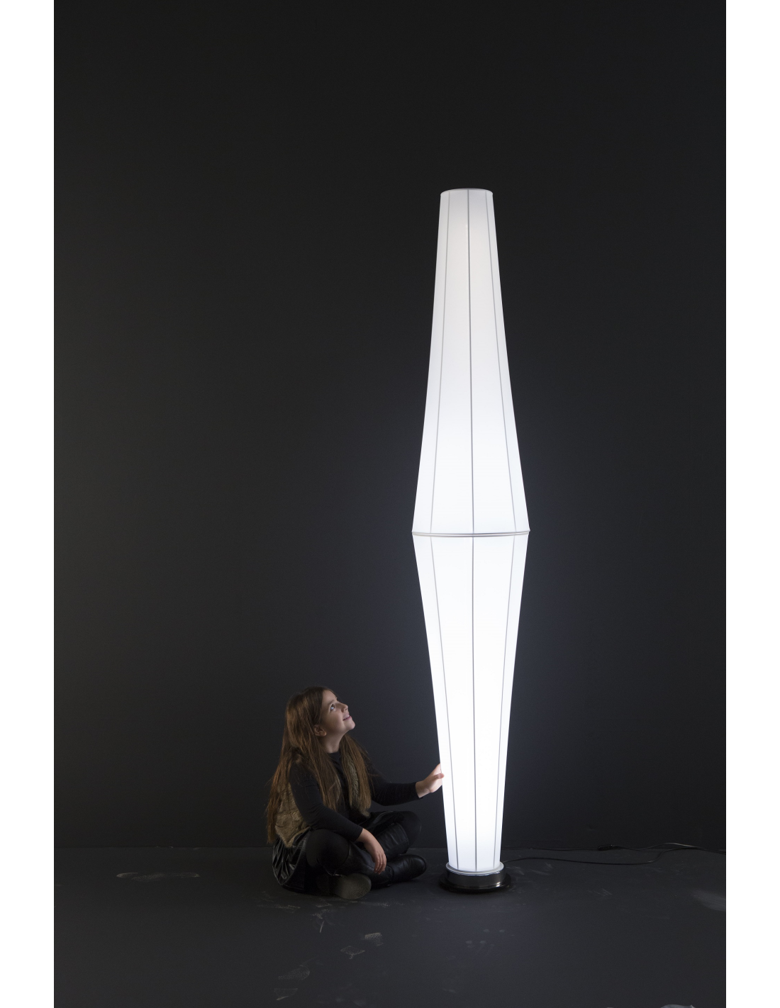 Si caratterizza per l'estrema leggerezza della struttura in metallo e lycra e per le forme lineari dei tondini saldati tra loro che rappresentano il tratto connotativo della collezione, reinterpretando la storica linea classica delle lampade tradizionali con paralume, generando un dialogo tra tradizione e contemporaneità.