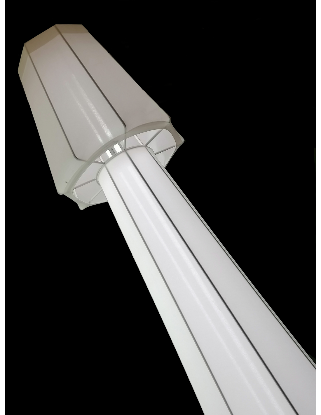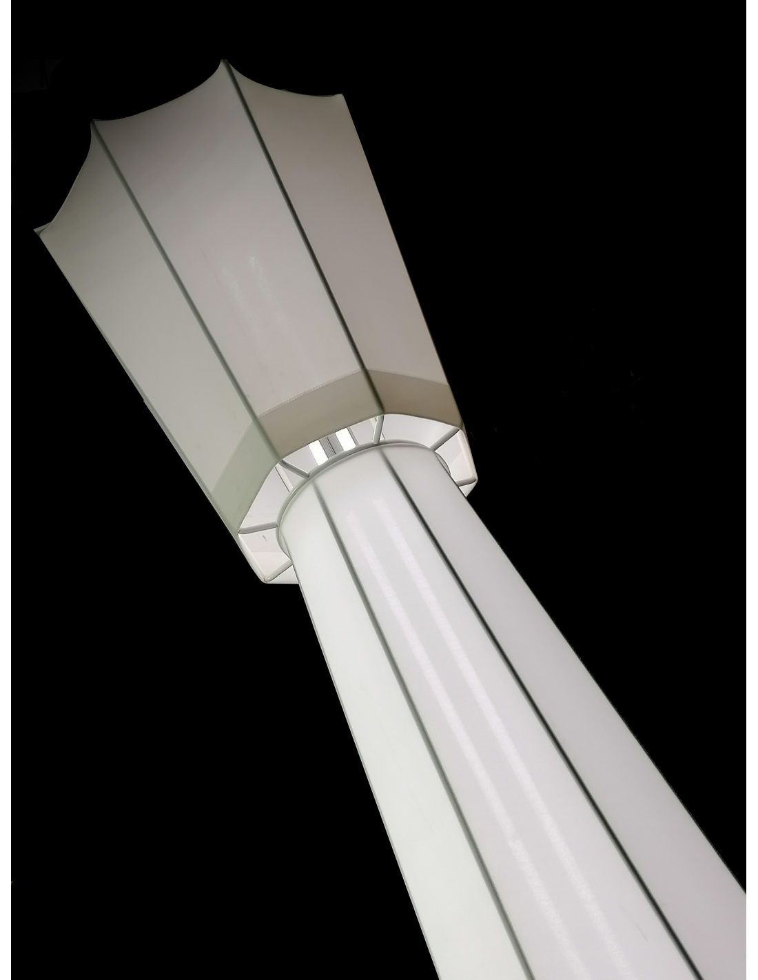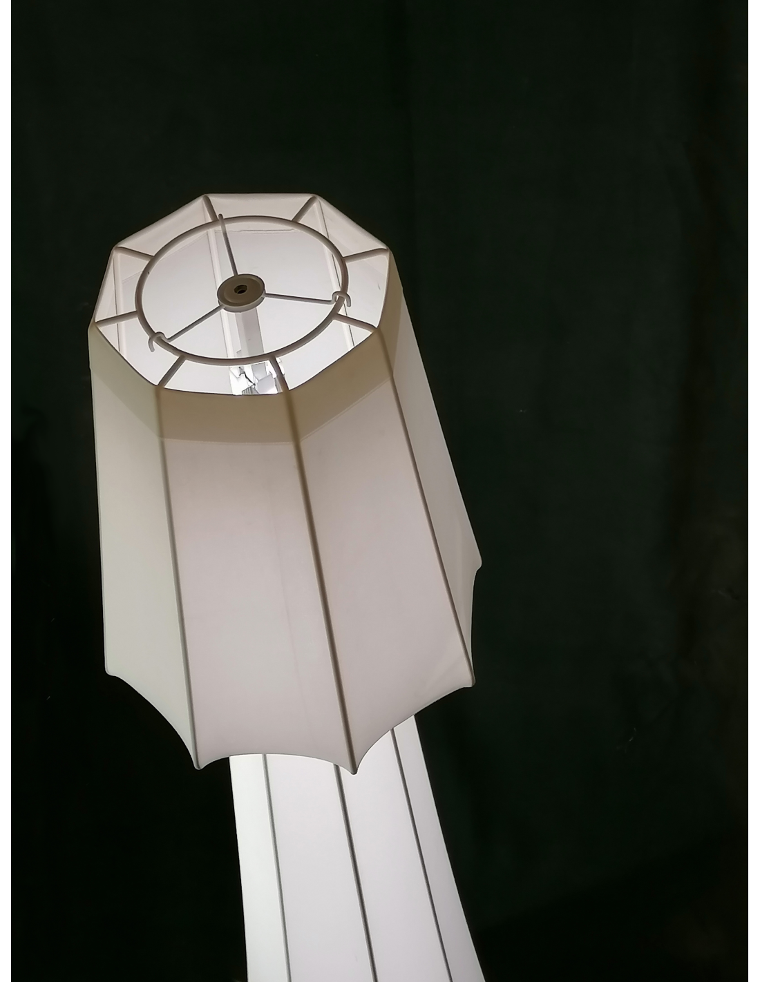Si caratterizza per l'estrema leggerezza della struttura in metallo e lycra e per le forme lineari dei tondini saldati tra loro che rappresentano il tratto connotativo della collezione, reinterpretando la storica linea classica delle lampade tradizionali con paralume, generando un dialogo tra tradizione e contemporaneità.