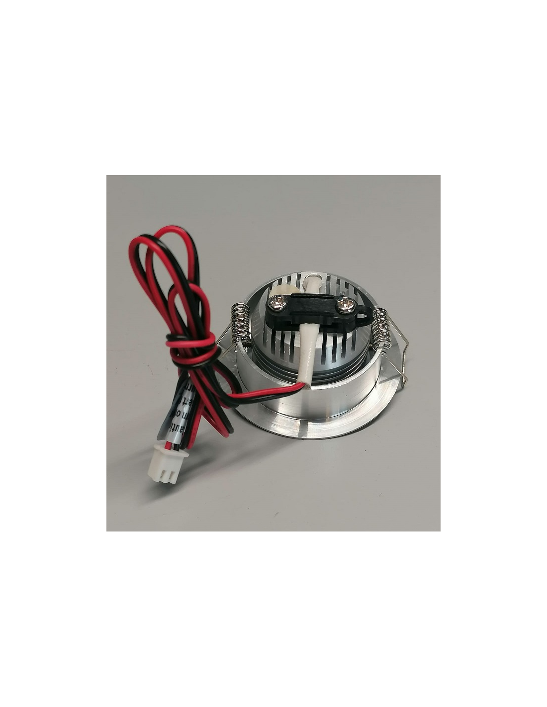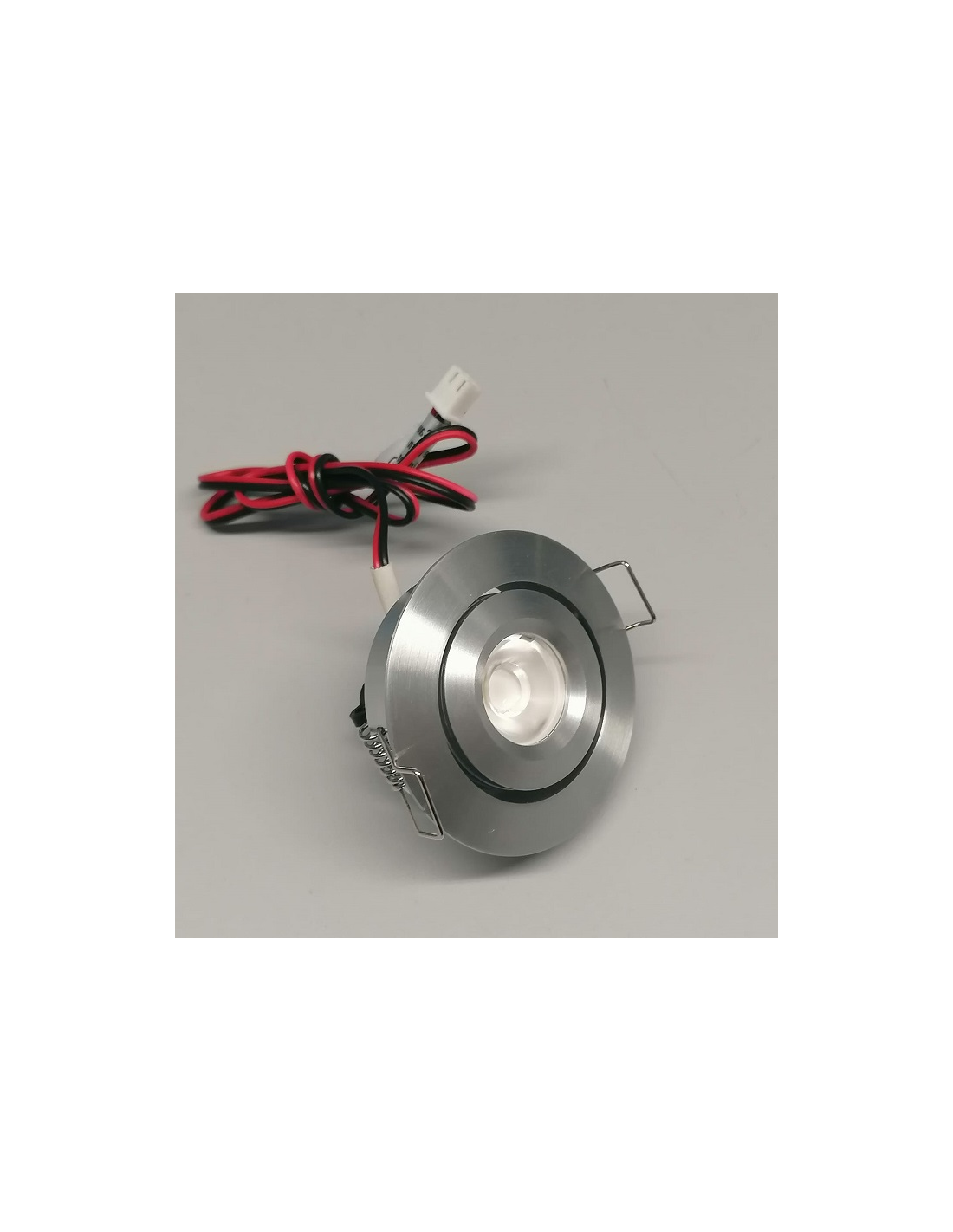 L’illuminazione è data da 1xLED di Potenza 1,2W, luce bianca 6000K, alimentazione in corrente stabilizzata 350mA, alimentatore/driver elettronico escluso. L’apparecchio è disponibile anche con LED di potenza a luce bianca calda 3500K.