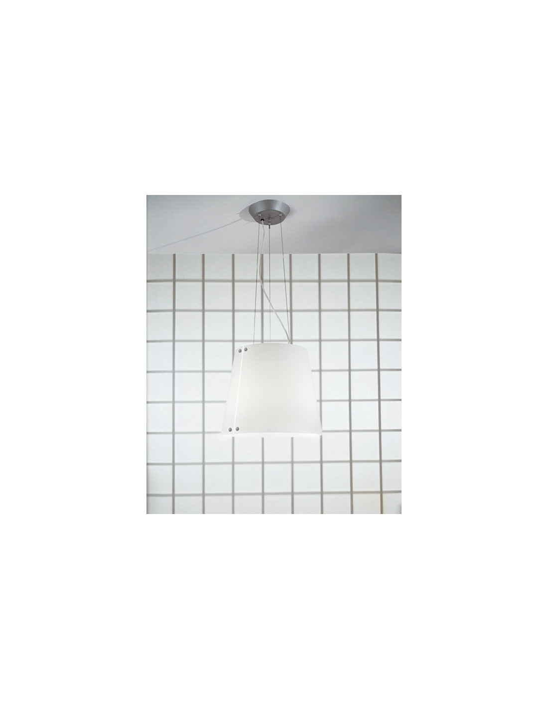 Plafoniera da Parete e Soffitto. Montatura in metallo, particolari cromati. Vetro satinato bianco.