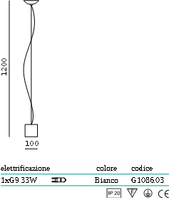 Lampada Led a Sospensione a luce diffusa. Il corpo lampada è realizzato da anelli di metallo curvato attraverso i quali filtra una parte di luce creando un'atmosfera soffusa lungo le pareti delle lampade. Finitura verniciato bianco RAL 9010, su richiesta Foglia Oro.
