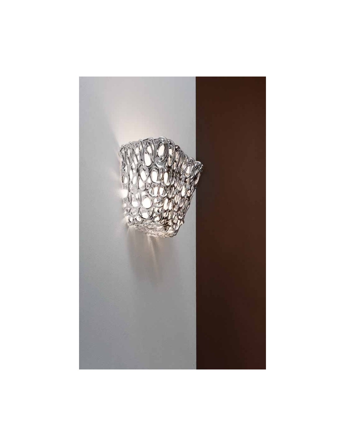 Apparecchio di Illuminazione da Parete, fisso, da utilizzare in ambienti interni, per illuminazione diffusa. Il corpo lampada è costruito interamente in metallo: la struttura portante in metallo in finitura Cromo Lucido, il corpo lampada Nickel Spazzolato o verniciato a polveri bianco Ral 9010. Accessori disponibili: schermo frangiluce in metallo...