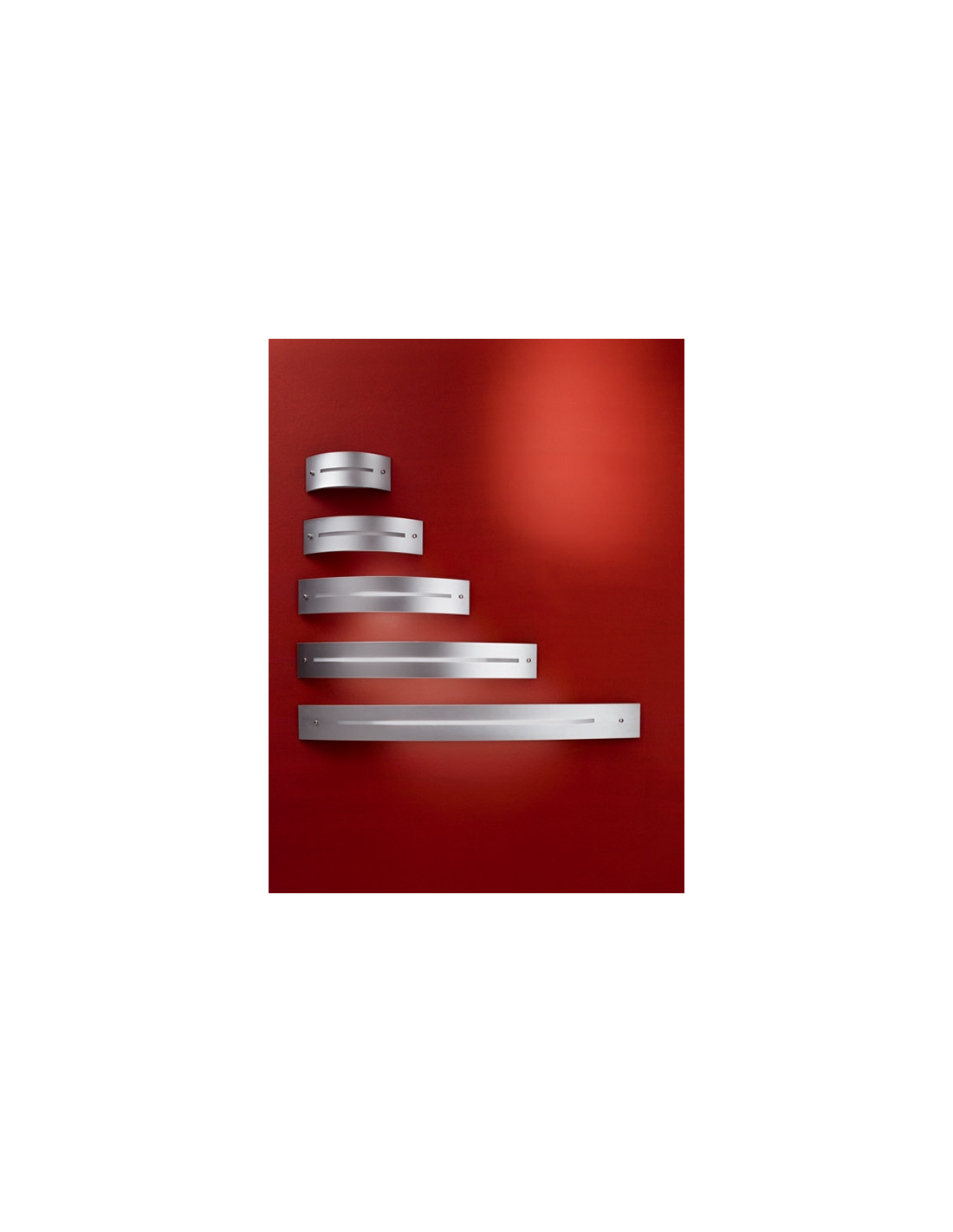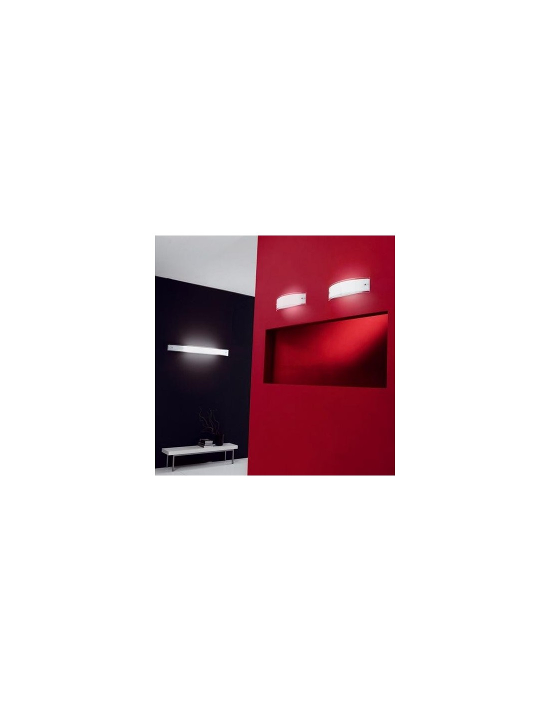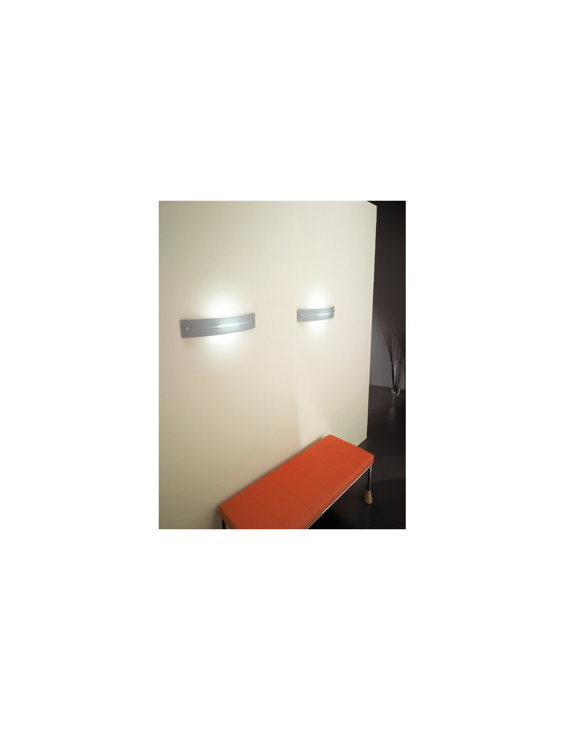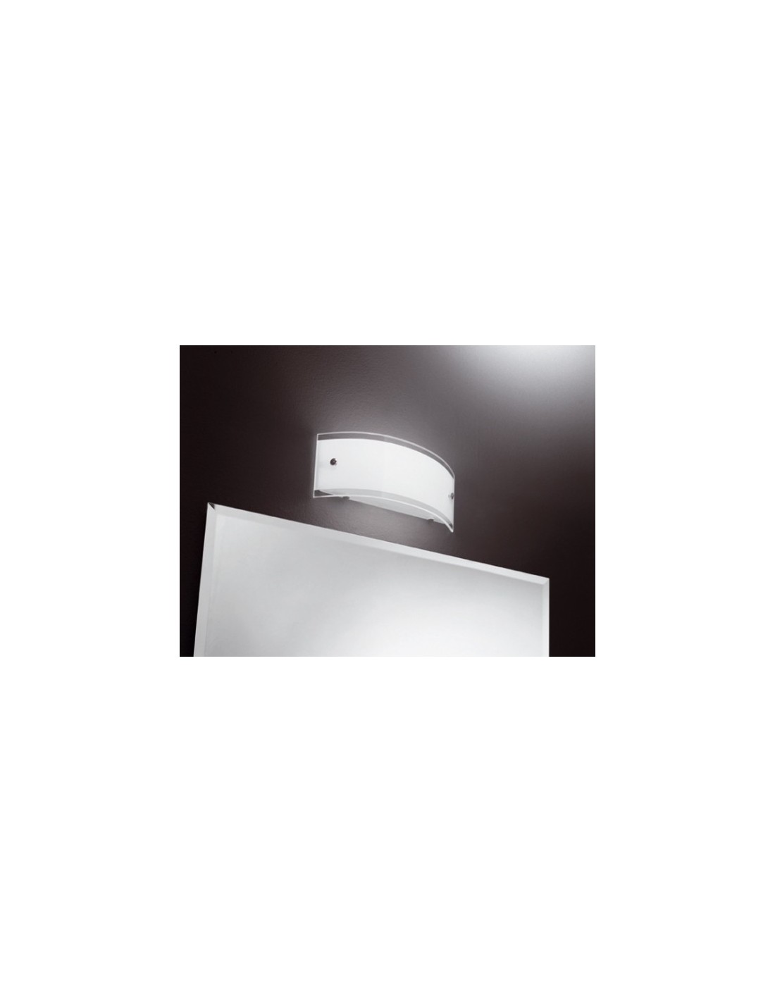 Lampada Led da Parete a luce diffusa. E' composta da una struttura in metallo verniciato e da un diffusore in vetro serigrafato bianco o silver con i reggi-vetro cromati.